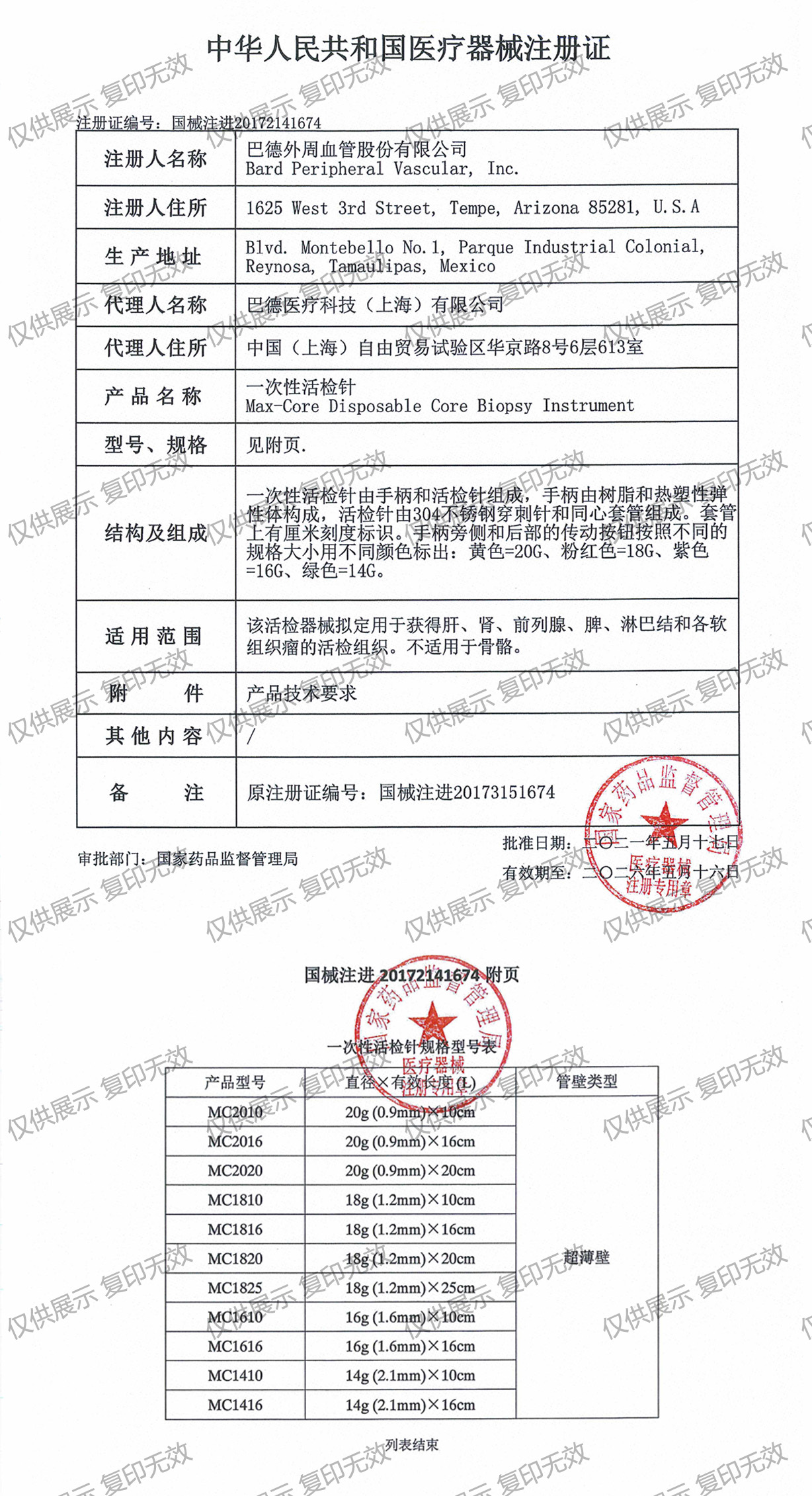 注冊(cè)證編號(hào):國械注進(jìn)20172141674
