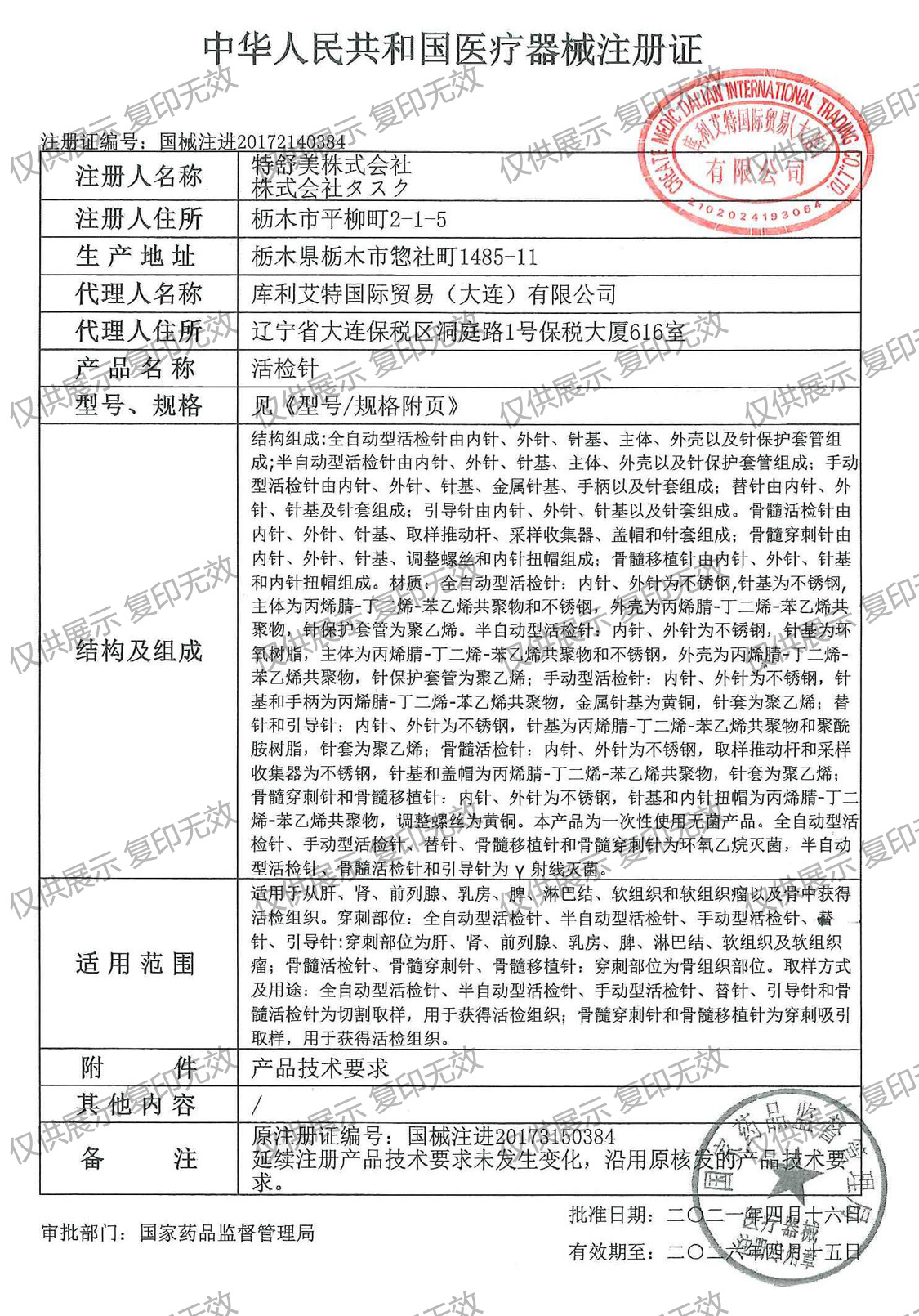 注冊(cè)證編號(hào):國(guó)械注進(jìn)20172140384