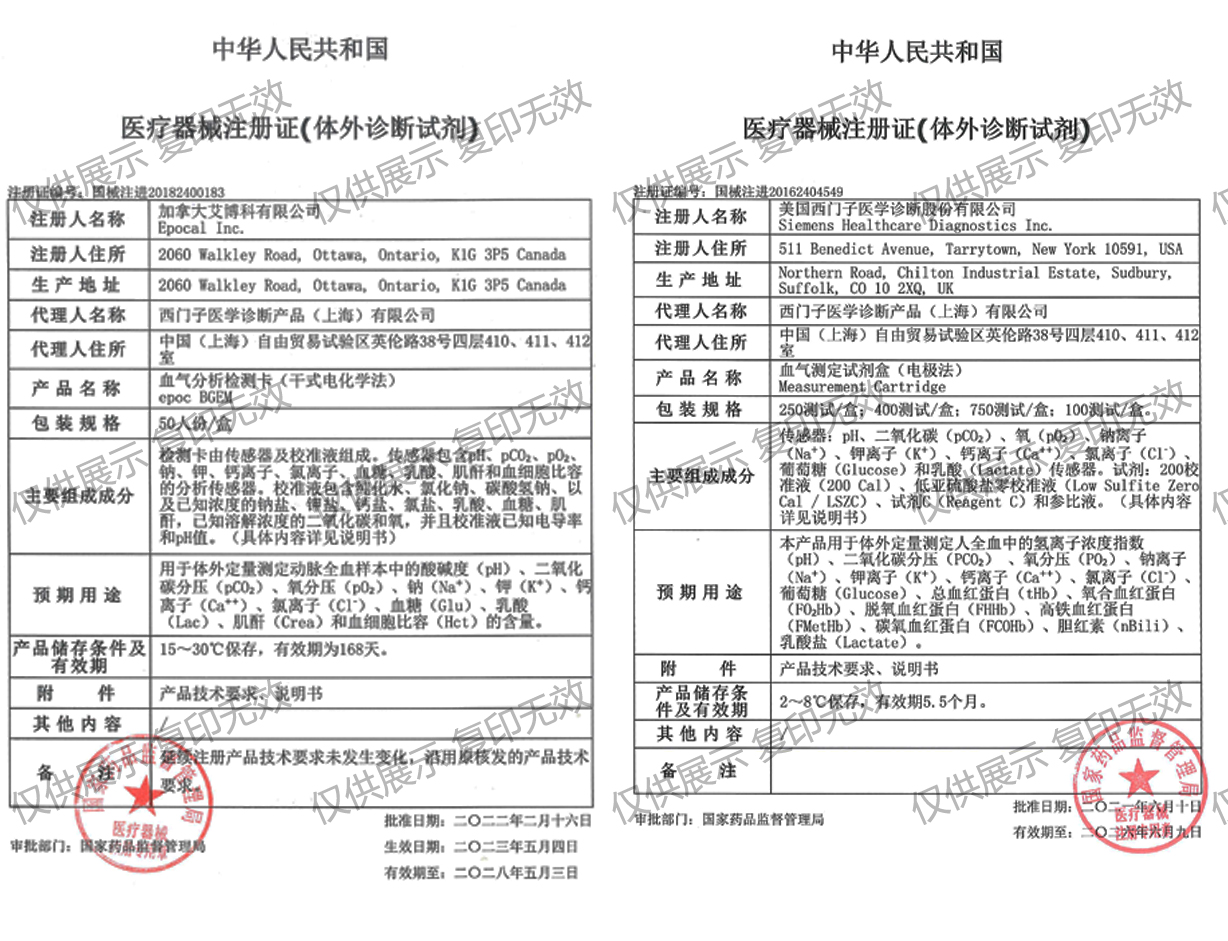 epoc血?dú)夥治鰴z測卡注冊證編號:國械注進(jìn)20182400183