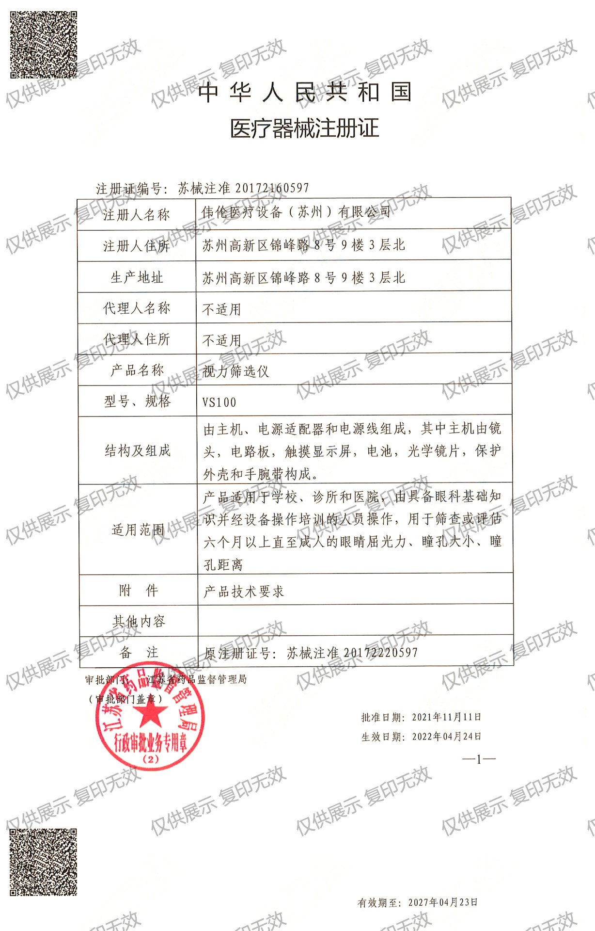 適用范圍:產(chǎn)品適用于學校、診所和醫(yī)院,由具備眼科基礎知識并經(jīng)設備操作培訓的人員操作,用于篩查或評估六個月以上直至成人的眼睛屈光力、瞳孔大小、瞳孔距離。