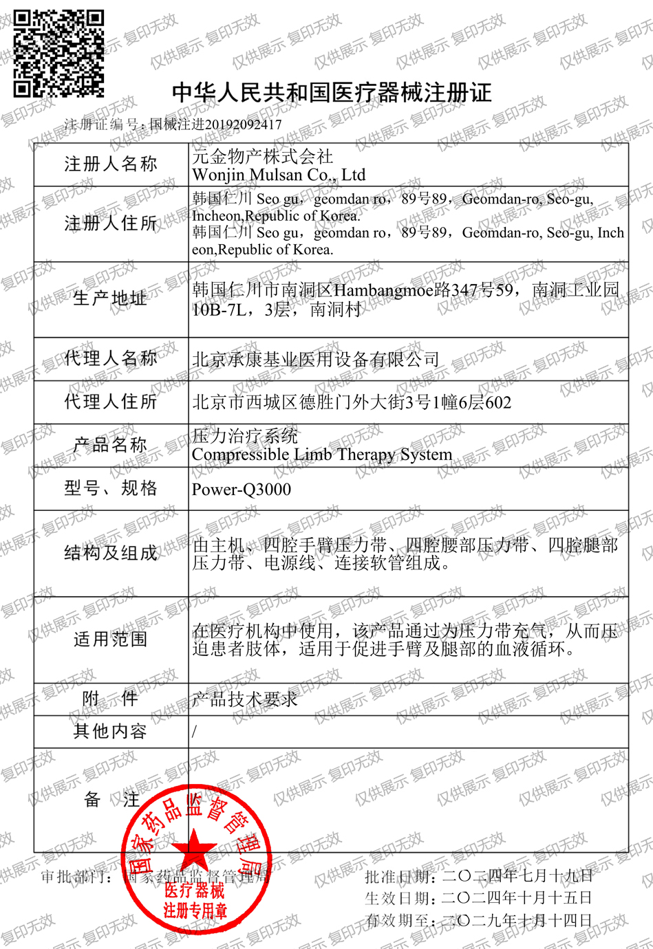 產(chǎn)品名稱:壓力治療系統(tǒng)Compressible Limb Therapy System