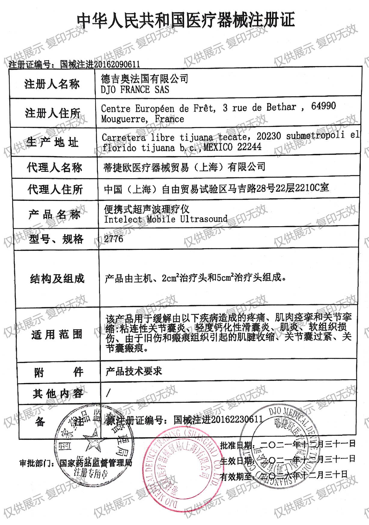 注冊證編號:國械注進(jìn)20162090611