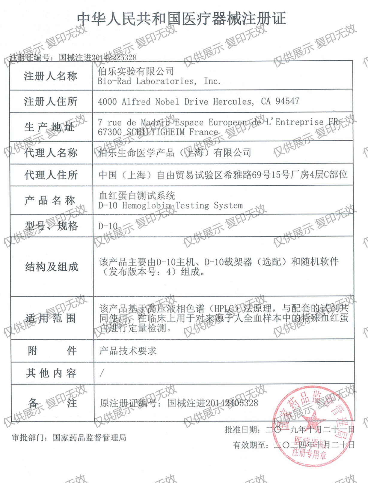 適用范圍:該產(chǎn)品基于高壓液相色譜(HPLC)法原理,與配套的試劑共同使用,在臨床上用于對來源于人全血樣本中的特殊血紅蛋白進(jìn)行定量檢測。