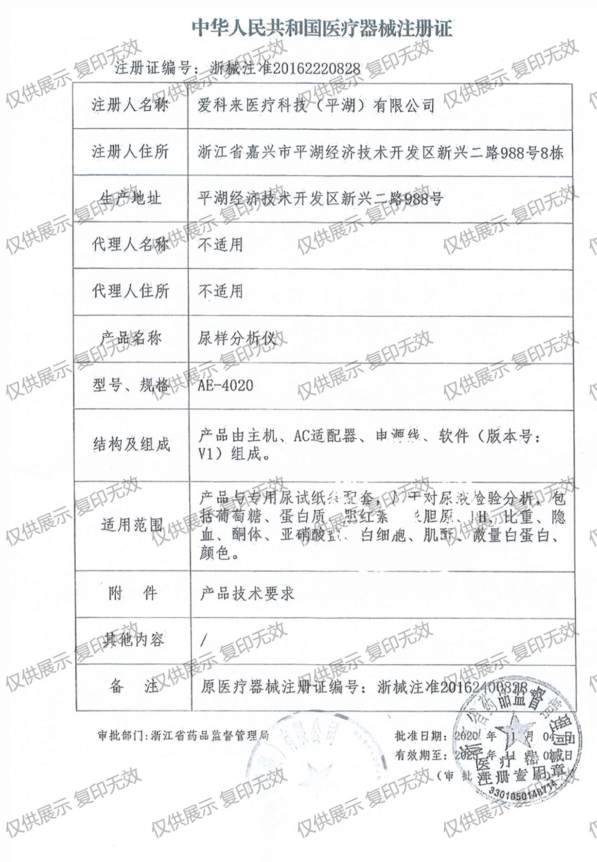 注冊(cè)證編號(hào):浙械注準(zhǔn)20162220828